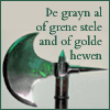 Comment: SMITE. Middle English means (approx.) "the blade all of green steel, hewed from gold."